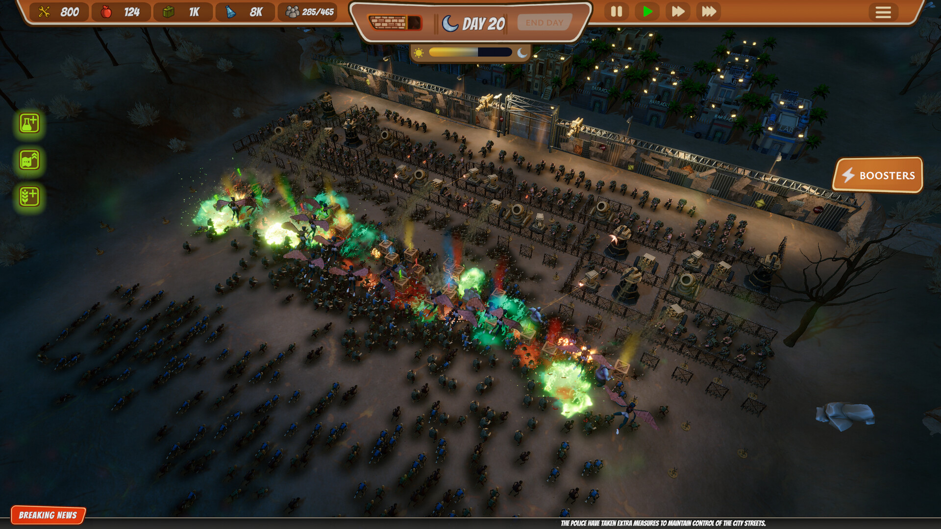 《City Defense Z》将快节奏生存与基地建设融合为Roguelite体验。战略使用卡牌强化防御、扩展基地,夜幕降临时迎战大批僵尸。每次尝试都要适应,解锁元升级,看看你的城市能存活多久。