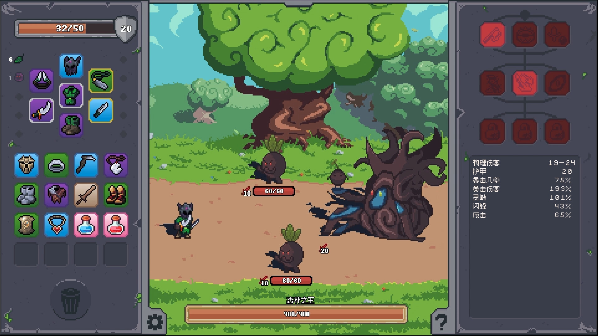 每一局游戏技能树都会变化,随机应变,同时合理搭配各种装备,令装备形成强大的联动效果,打造扭转胜负的角色构筑,击败拦在眼前的一个又一个头目。走进这款类Rogue背包管理游戏,每一局游戏都会让你感觉到不同的惊险和爽快!