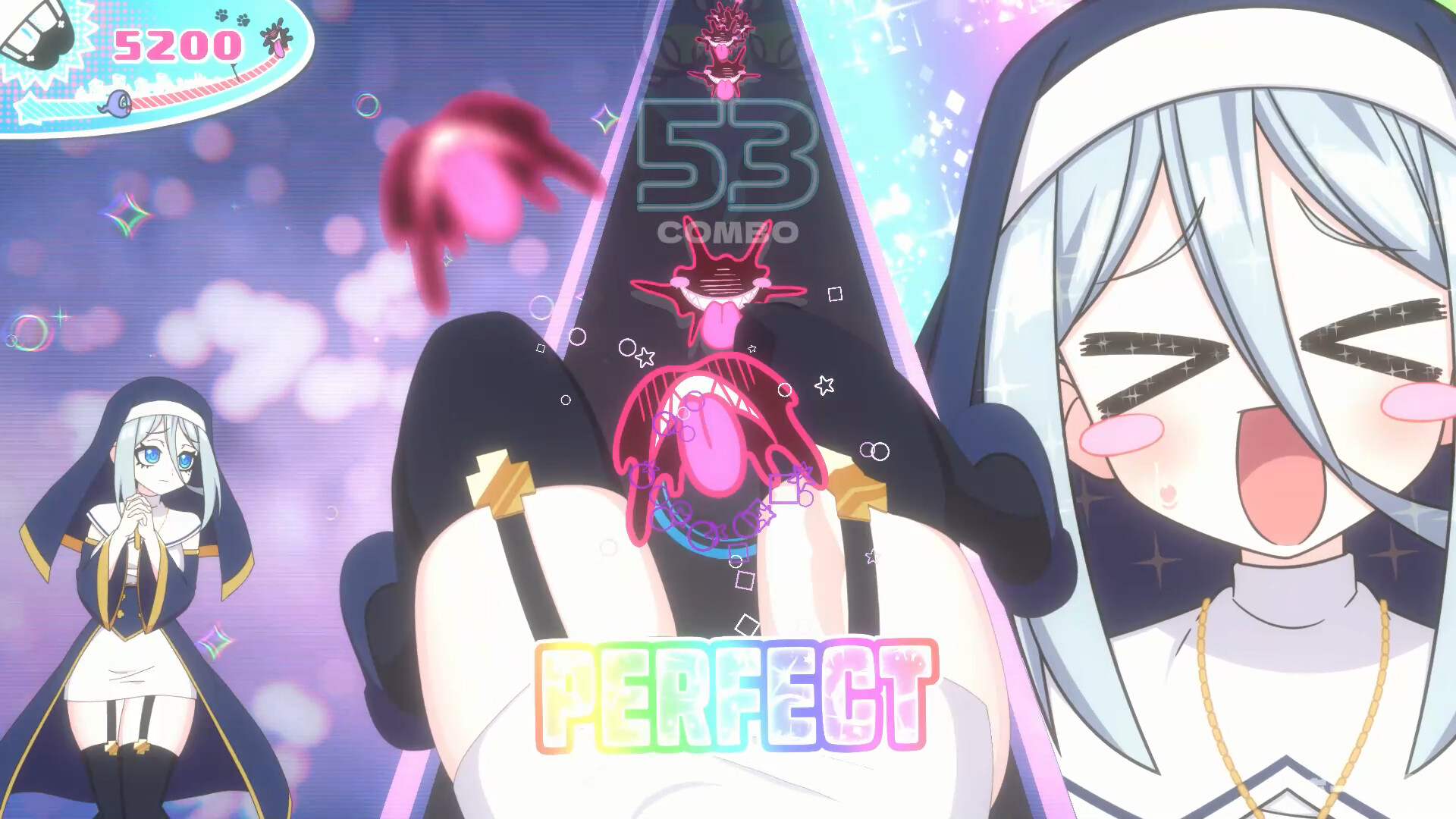 这是一款用大腿夹住并净化灵魂的节奏动作游戏! 玩家需要操作大腿,伴着节奏夹住漂来的灵魂。 用大腿有节奏地夹住灵魂,净化它们吧!! Let’s Paradise!!